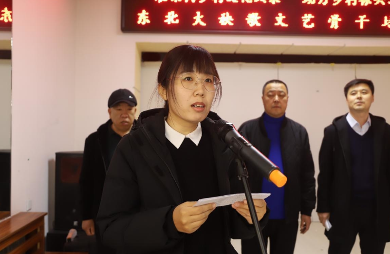 開班儀式上,張遠(yuǎn)博宣布二人轉(zhuǎn)、東北大秧歌文藝骨干培訓(xùn)班開班。