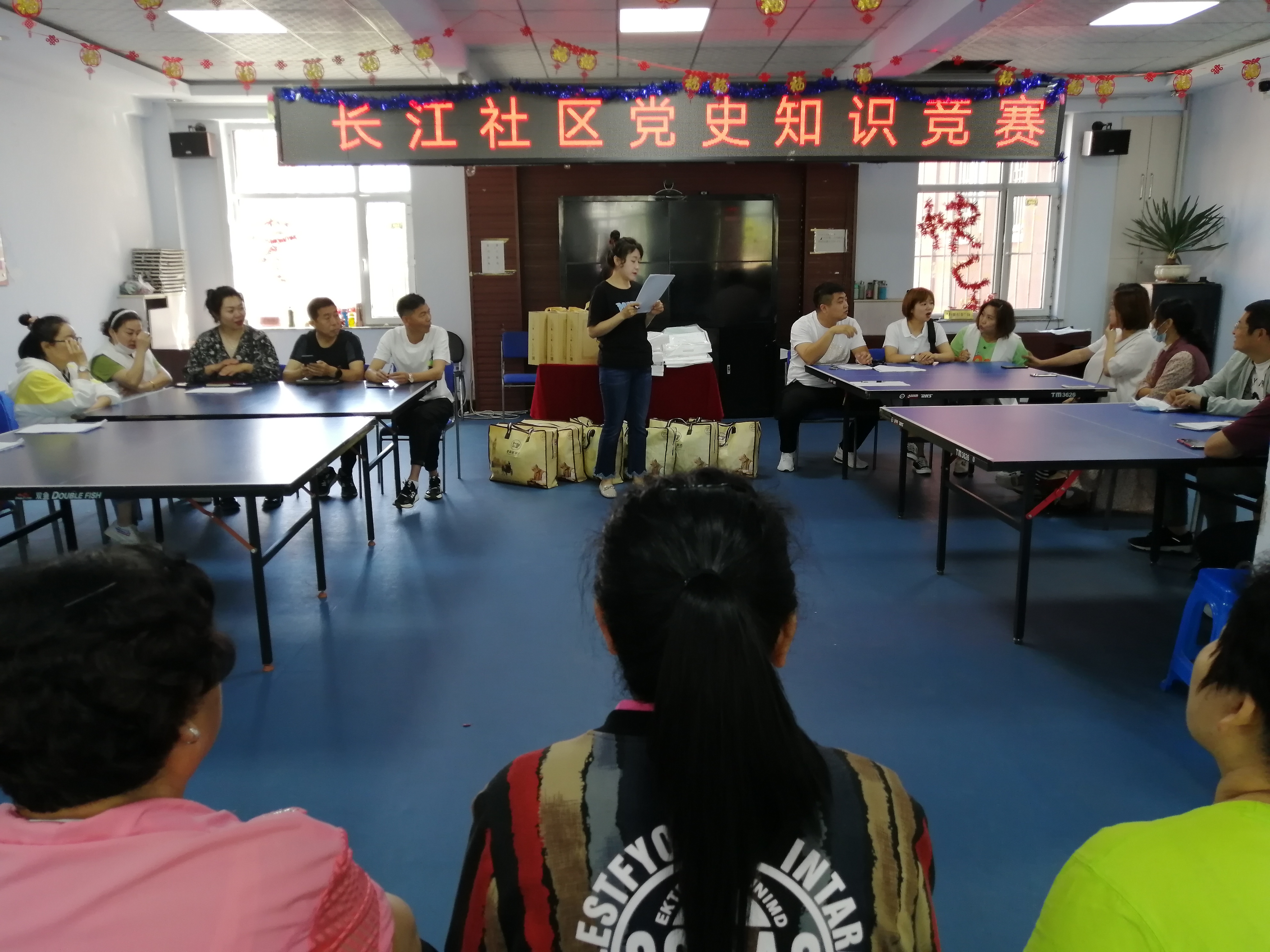 “20世紀(jì)初期哪兩大中、外政治事件促進(jìn)了中國(guó)共產(chǎn)黨的誕生?是1919年五四運(yùn)動(dòng)和1917年俄國(guó)的十月社會(huì)主義革命的勝利?!薄?919年5月4日,五四愛(ài)國(guó)運(yùn)動(dòng)爆發(fā)的直接導(dǎo)火索是什么?是巴黎和會(huì)上中國(guó)外交的失敗?!薄拔逅倪\(yùn)動(dòng)對(duì)中國(guó)共產(chǎn)黨建立的意義在于什么?在于促進(jìn)了馬克思主義和中國(guó)工人運(yùn)動(dòng)的結(jié)合?!薄?月18日上午,一聲聲清脆地提問(wèn),一句句鏗鏘有力的回答,渲染著每一個(gè)人,靖宇鎮(zhèn)長(zhǎng)江社區(qū)二樓活動(dòng)室內(nèi)正在開(kāi)展黨史知識(shí)競(jìng)賽,整個(gè)活動(dòng)場(chǎng)面既嚴(yán)肅又活潑熱烈,選手們競(jìng)相答題,毫不遜色。