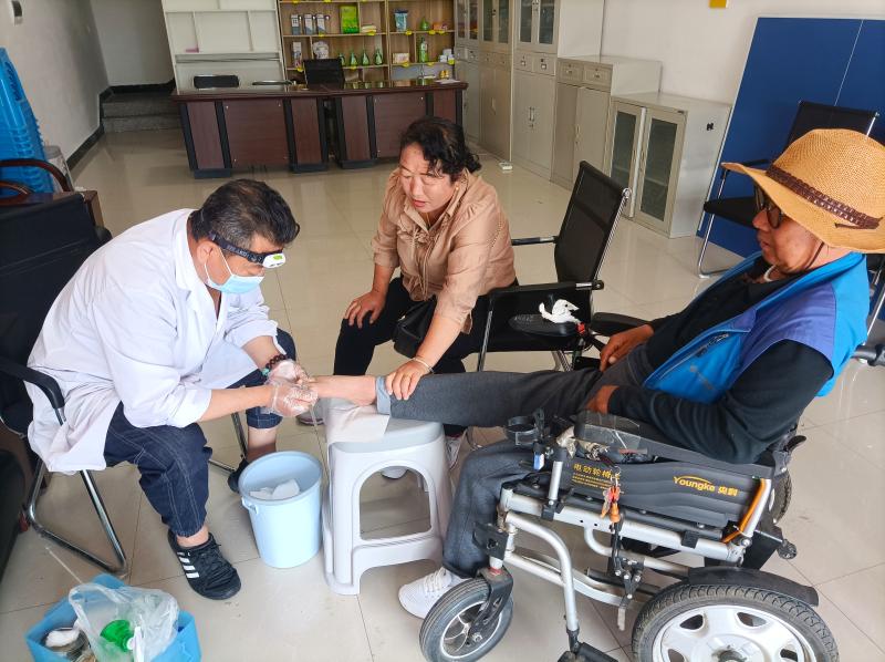 6月8日上午,李季攜帶工具和藥品在靖宇鎮(zhèn)文化旅游科人員的陪同下來到靖宇鎮(zhèn)永生村,一下車就開始詢問等候的村民張淑英、龐桂茹、陳艷春等人的需求,查看皮膚性質(zhì)。陸桂榮鼻唇溝長了個綠豆大小的痦子,很是影響臉部美觀,李季拿出祖?zhèn)鞯乃幐啵呁磕ㄟ吀嬖V王杰注意事項,不要戴口罩,避免哈氣浸濕藥膏,兩小時后就可以洗臉,晚上就能沖澡。張淑英的腳甲溝炎非常嚴重,去年花了三百元也沒治好,李季仔細察看后,告訴張淑英不用擔心,今天先給她處理一下,明天去店里進行系統(tǒng)治療,張淑英緊張的心情終于放下了。
