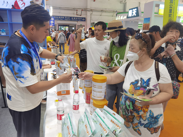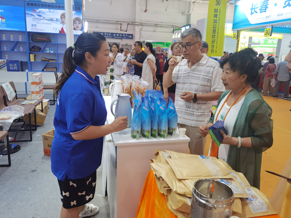 一旁新疆阿勒泰哈納斯乳業有限公司的銷售代表孫海祥也一直沒閑著,駝奶粉、沙棘汁、駝奶片迅速被“搶購一空”,于是趕忙打電話和廠家“告急”。 “吉林省援疆指揮部為我們搭建這么好的平臺,其實這相當于對我們新疆企業產品進行最好的宣傳推廣,真是太棒了。”孫海祥感慨道。