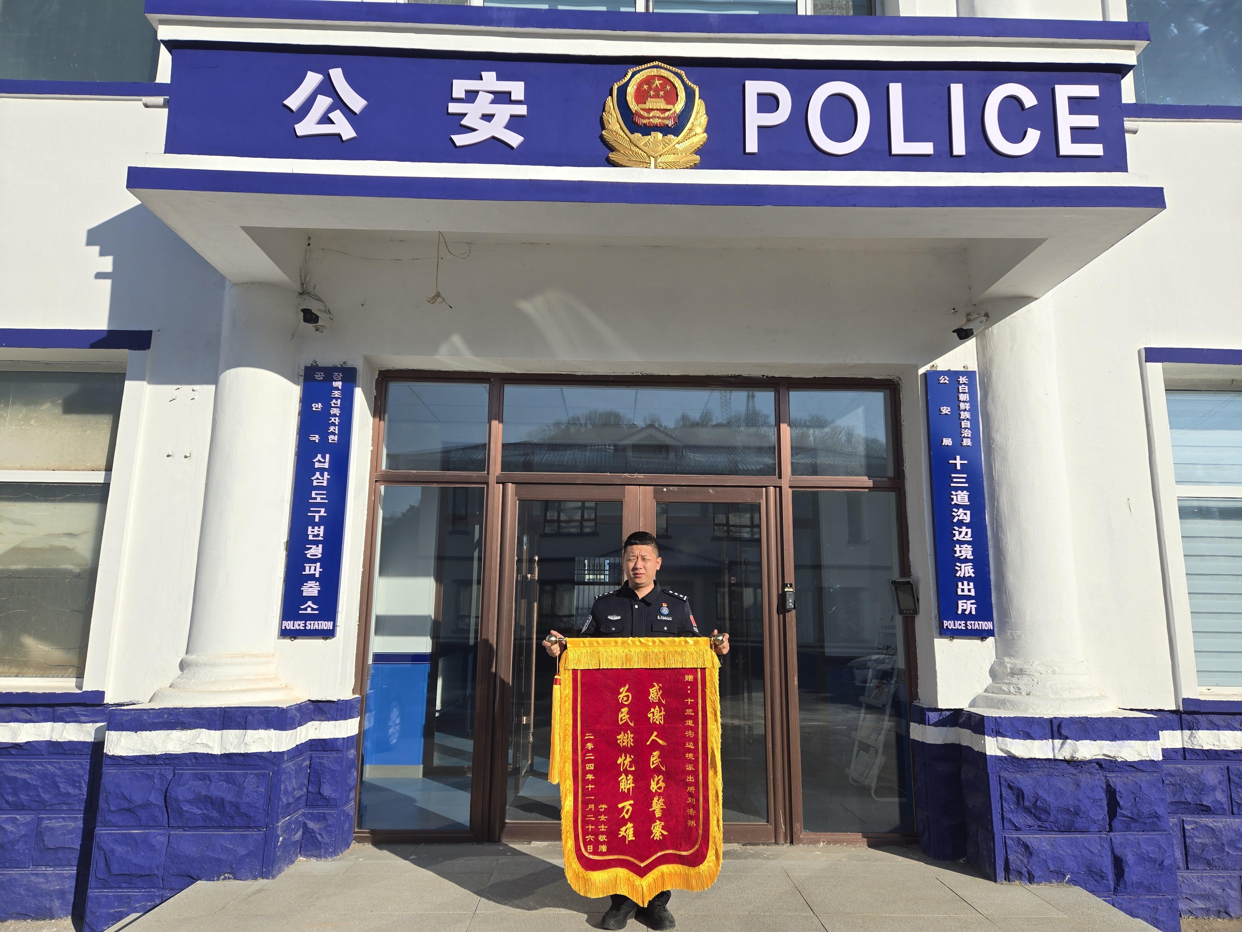 2024年12月3日,一面寫有“感謝人民好警察 為民排憂解萬難”的錦旗跨越千里之外來到白山邊境管理支隊十三道溝邊境派出所,伴隨錦旗而來的還有受助群眾于女士通過微信發來的道謝話語。