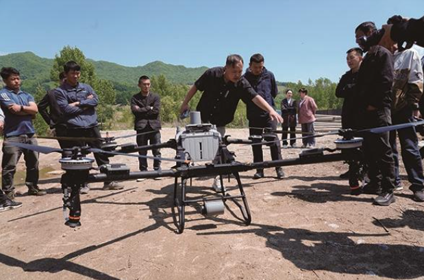 受蛟河市天崗鎮(zhèn)政府邀請,近日,吉林機械工業(yè)學校來到窩集口村,為黨員和農(nóng)戶舉辦一場植保無人機操作與使用專題培訓,將科技課堂直接搬到田間地頭。