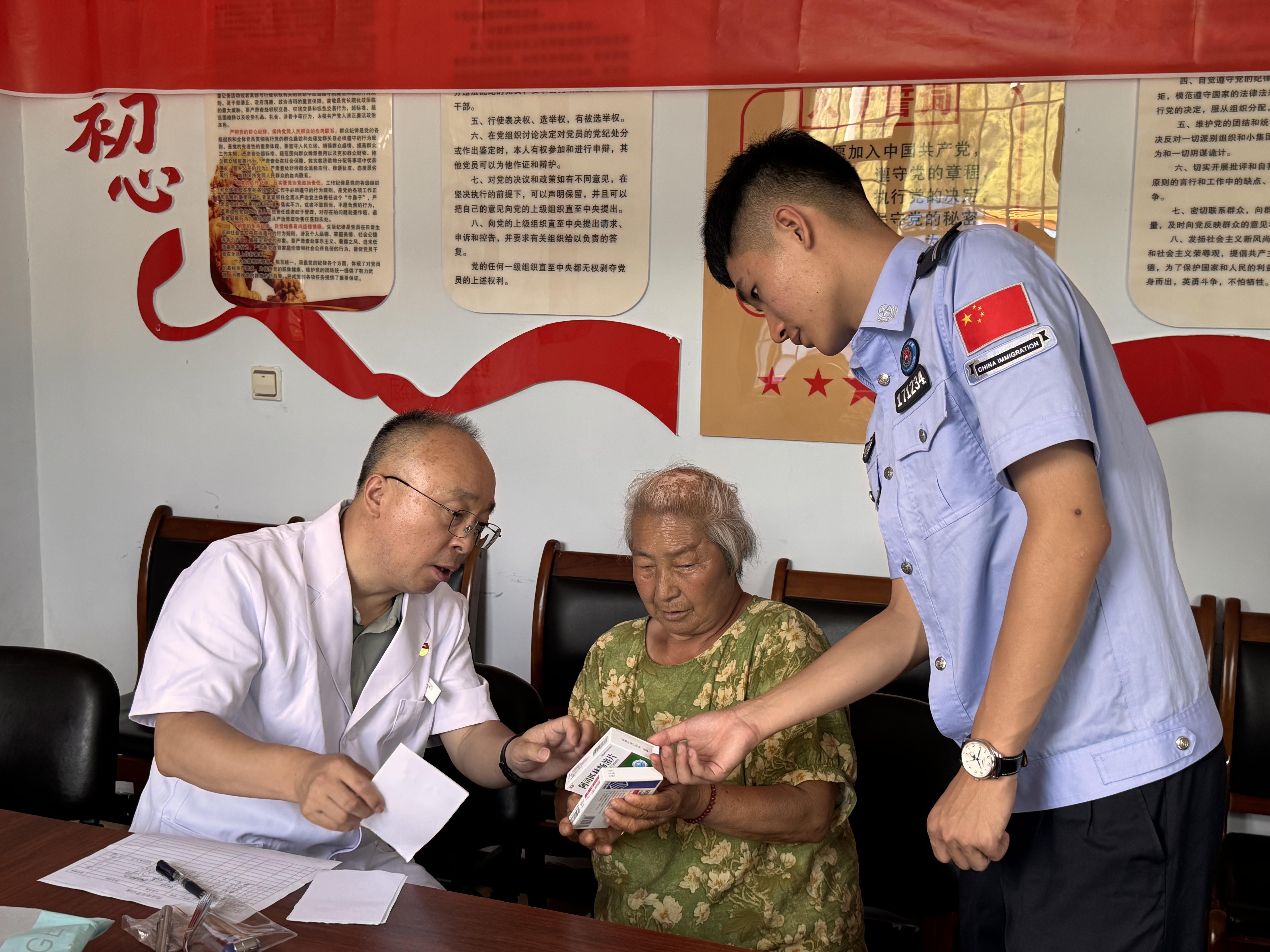 為深入貫徹落實鄉村振興戰略,促進優質醫療資源下沉和醫學知識技術傳遞,把健康服務送到邊疆群眾家門口,近日,長白縣馬鹿溝邊境派出所、長白縣衛生健康與醫療保障局聯合吉林醫藥學院附屬醫院“紅手環”志愿服務團隊組建“警·校同心圓”黨建聯合體,來到長白縣馬鹿溝鎮邊境村開展巡回醫療義診工作。 “看到你們再次來給我檢查身體,我特別感動,你們是好人呀。”90多歲的抗美援朝老兵鄭宣榮一眼就認出熟悉的民警和義診專家,緊緊的拉著他們的手不停的說著感謝。