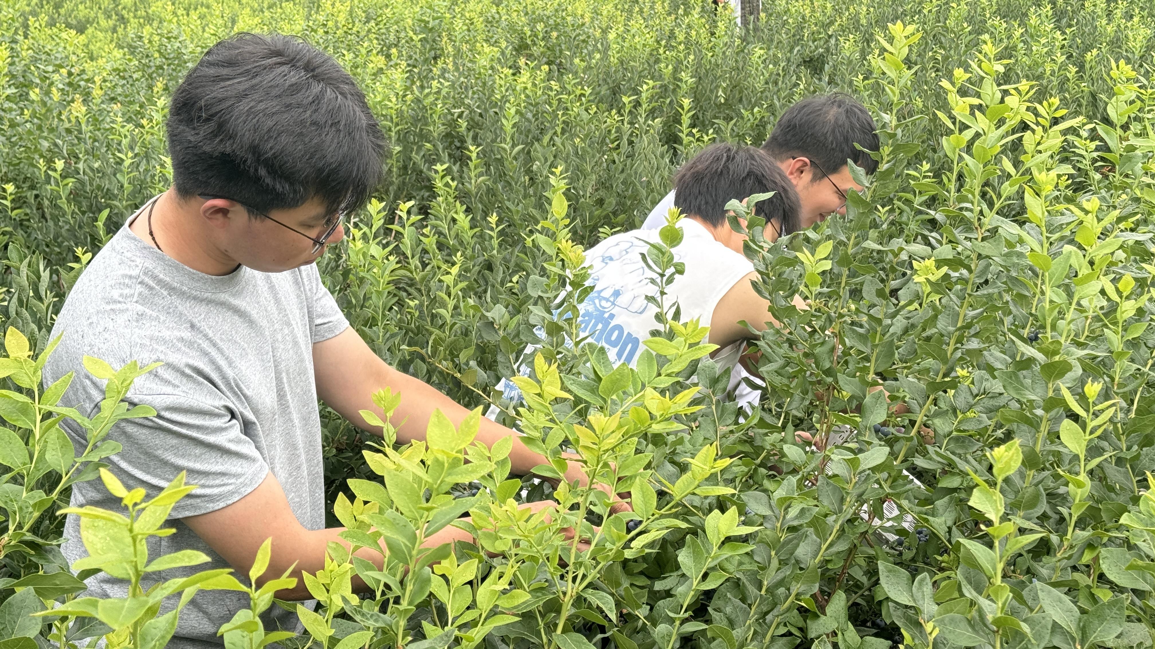 優種提產,筑牢“豐收底氣”?!捌贩N好才能產量高、品質優。”赤松鎮把優質品種栽培與培育作為產業發展的核心抓手,篩選引進適合本地氣候的優質藍莓品種,形成“錯峰成熟”的種植格局。如今,一顆顆飽滿多汁、甜度達標的藍莓掛滿枝頭,不僅畝產穩中有增,更因品質過硬成為市場“搶手貨”,為產業發展筑牢“豐收底氣”。今年投產的1000畝藍莓,涵蓋杜克、德雷克、藍豐等7個品種,不僅果皮薄、甜度高、產量大,性價比也很突出。從7月中旬到8月中旬,游客都能采摘到鮮果。預計今年產量超500噸,產值達600余萬元,帶動周邊近80余名脫貧人口人均增收1200余元。 崗位擴容,激活“就業活力”。藍莓產業的蓬勃發展,為當地群眾帶來了實實在在的就業機會。從基地日常管護到采摘分揀、包裝運輸,產業鏈各環節都需要大量勞動力。村里通過“企業+農戶”模式,優先吸納本地村民就業,僅采摘季就能提供近百個臨時崗位,周邊農戶在家門口就能實現日均增收百元以上。同時,產業鏈延伸帶動農資供應、物流運輸等配套行業發展,間接創造就業崗位,讓越來越多的村民從“農閑人慌”變為“四季有活干、年年有收入”。