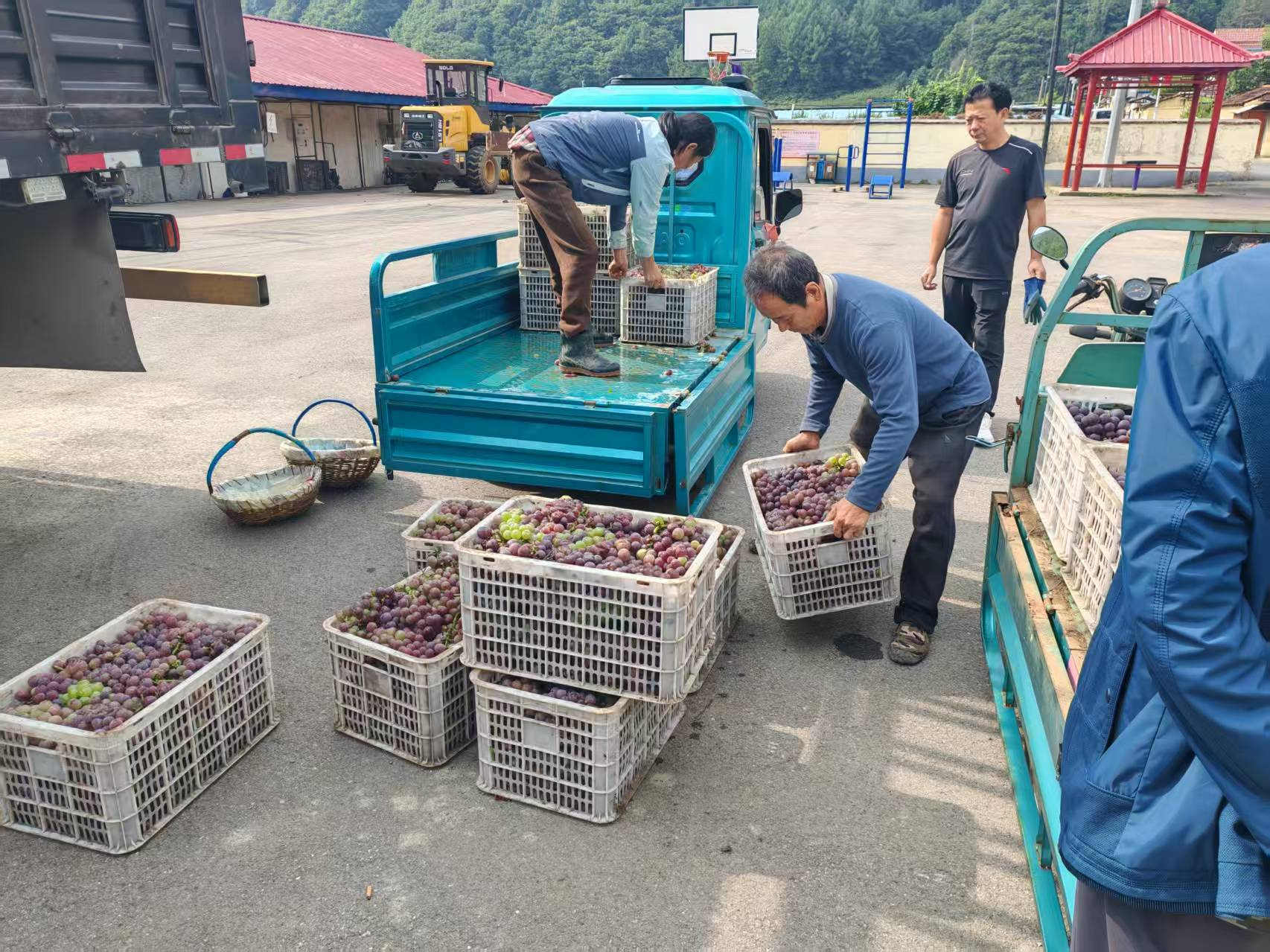 在這個(gè)金秋時(shí)節(jié),走進(jìn)坐落在G331國(guó)道沿線的邊境村落——臨江市大栗子街道望江村,迎面撲來(lái)的是田間陣陣果香,這里處處洋溢著豐收的喜悅,繪就了一幅色彩斑斕的豐收畫(huà)卷。 望江村內(nèi),連片的葡萄園里綠意盎然,紫里透紅的“蜜汁葡萄”垂掛其間,被清晨的白霜包裹,在陽(yáng)光的照射下顯得格外誘人,心靈手巧的種植戶(hù)們一手拎筐一手拿剪在田間穿梭,不一會(huì)兒,一籃一籃裝滿(mǎn)葡萄的籮筐就出現(xiàn)在人們眼前。與此同時(shí),村部門(mén)前同樣是一派忙碌景象,農(nóng)戶(hù)們正在為剛剛采摘好的黃瓜、西紅柿、蜜汁葡萄等農(nóng)特產(chǎn)品封箱裝車(chē),據(jù)悉,秋收時(shí)節(jié)這里每天都有來(lái)自超市、果蔬市場(chǎng)以及榨汁廠的訂單。截至目前,望江村蜜汁、茉莉香等各品種葡萄種植面積400余畝,年產(chǎn)100萬(wàn)斤以上,年內(nèi)凈收入預(yù)計(jì)可超過(guò)400萬(wàn)元。