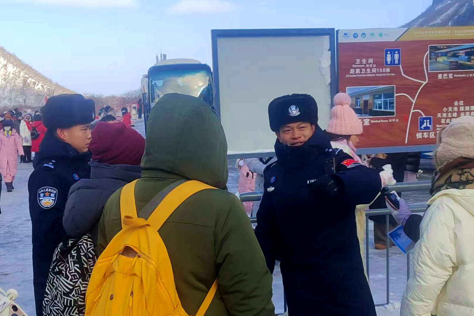變被動(dòng)管理為主動(dòng)服務(wù),將執(zhí)勤民警作為冬季護(hù)游的前沿窗口,健全快速響應(yīng)機(jī)制,做到游客求助“零推脫”、涉旅警情受理“零積壓”、與游客溝通“零距離”,第一時(shí)間為游客解決燃眉之急。“護(hù)游”民警還提前制定應(yīng)急救助預(yù)案,在景區(qū)設(shè)立臨時(shí)救助點(diǎn),配備急救藥品、防寒物資和應(yīng)急工具。元旦以來(lái),民警先后為多名游客提供救助。在邊境檢查站執(zhí)勤卡點(diǎn),黨員先鋒崗持續(xù)釋放服務(wù)效能,熱氣騰騰的開(kāi)水、細(xì)致入微的咨詢(xún)指引,成為寒冬里最貼心的慰藉。