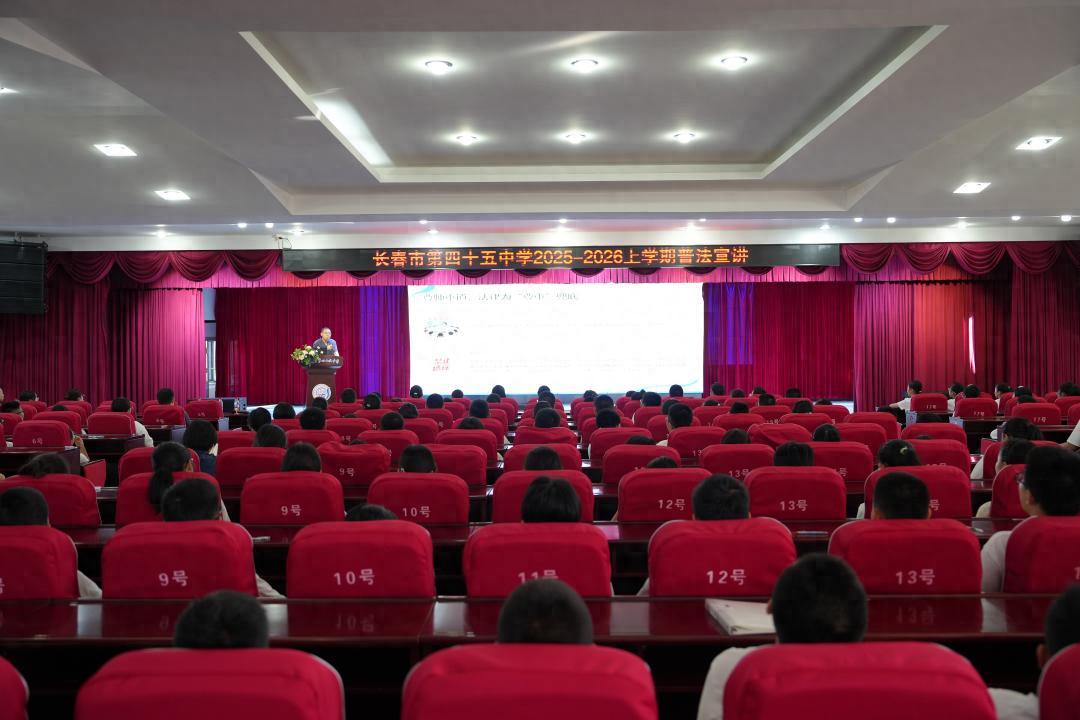 為進一步增強青少年法治觀念,弘揚尊師重道傳統(tǒng)美德,營造安全、和諧、文明的校園環(huán)境,近日,長春市朝陽區(qū)人民法院審判委員會專職委員王忠旭走進長春市第四十五中學,以“教師節(jié)里的法律與道德”為主題,為學生帶來了一堂內(nèi)容豐富、意義深刻的開學“法治第一課”。