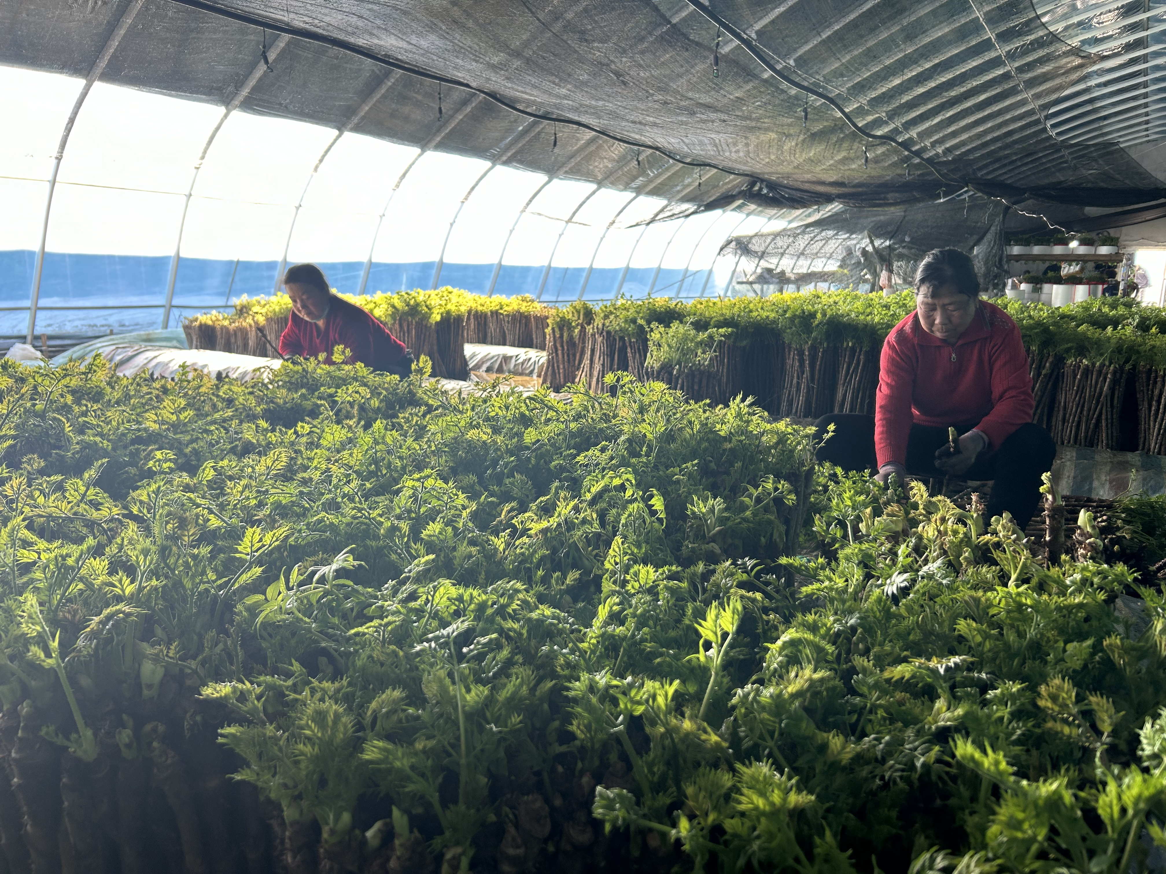 春節將至,溫室大棚成了臨江市四道溝鎮三合城村農民增收致富的一道靚麗的“風景線”。 在臨江市欣榮種養殖專業合作社的溫室大棚里,一株株新鮮的刺嫩芽、大葉芹、刺五加、猴腿兒、蕨菜、婆婆丁等山野菜長勢喜人,葉片飽滿,讓人垂涎欲滴,工人們正在忙著采摘,經打包裝箱等工序后,這些山野菜將承載著村民們致富的希望銷往全國各地。 三合城村充分結合市場需求和現代農業發展要求,發揮支部黨員先鋒模范作用,積極引導群眾調整農業結構,于2022年4月成立了臨江市欣榮種植養殖農民專業合作社,發展反季節山野菜產業。按照“黨組織引領、黨員示范、合作社支撐、群眾受益”的整體工作思路,通過大棚種植反季節山野菜幫助群眾勞務增收。