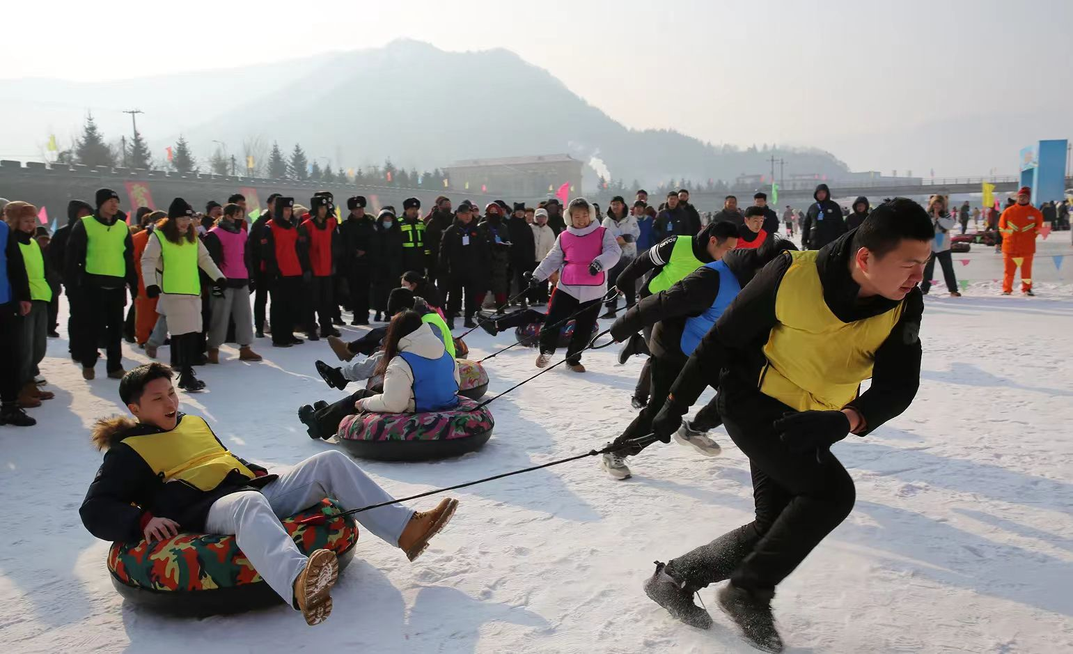 本次趣味運(yùn)動(dòng)會共設(shè)置了雪地拔河賽、冰上碰碰車、雪圈拉人接力、雪上爬犁、雪地足球5個(gè)充滿趣味與挑戰(zhàn)的比賽項(xiàng)目。全市21支代表隊(duì)近330余名運(yùn)動(dòng)員齊聚大湖街道冰雪樂園,演繹冰雪上的“速度與激情”。賽場上,各參賽隊(duì)員們不懼嚴(yán)寒頑強(qiáng)拼搏、賽出了風(fēng)格,賽出了水平,隊(duì)員們相互交流,密切配合凝聚了強(qiáng)大的力量;全體裁判員秉公裁判,確保了比賽公正進(jìn)行;全體工作人員周到的服務(wù)為運(yùn)動(dòng)會提供了堅(jiān)強(qiáng)的后勤保障,這也是全市黨員干部、職工腳踏實(shí)地,凝心聚力,開拓進(jìn)取,齊心奮進(jìn)工作作風(fēng)的真實(shí)寫照。