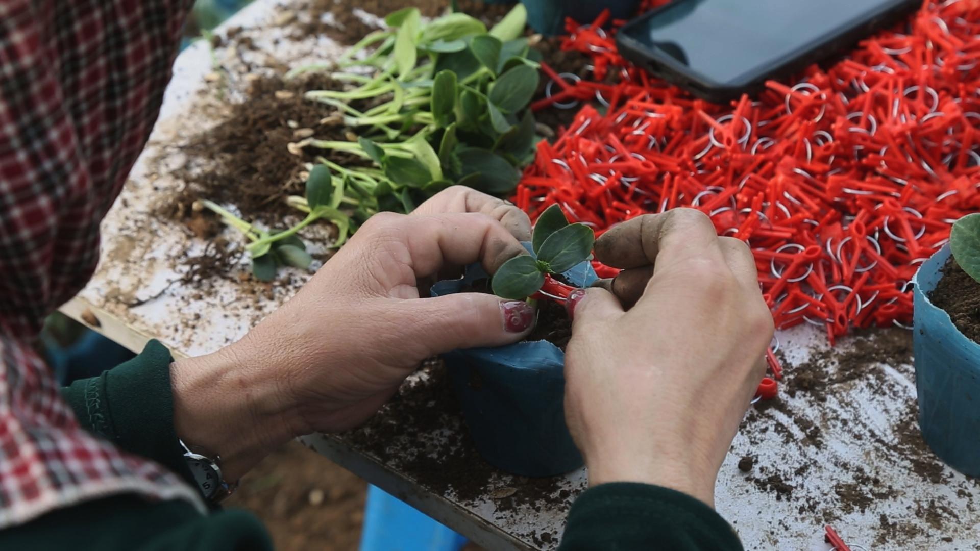 梨樹縣的瓜菜嫁接技術起步早、發展快,目前已經形成了零散農戶嫁接育苗和工廠化嫁接育苗兩種模式。全縣建有2個標準化育苗基地,年育苗能力達3000萬株,還有十余個零散農戶育苗點,主要供應周邊村屯的農戶。此外,當地還組建了幾支由技術嫻熟的農村婦女構成的專業嫁接苗團隊,她們每人每天最多可嫁接2000株,日薪在200至300元之間。嫁接團隊的張阿姨一邊忙著手里的活兒一邊說“嫁接是個技術活兒,但大地農閑時還能掙錢挺有成就感的。”
