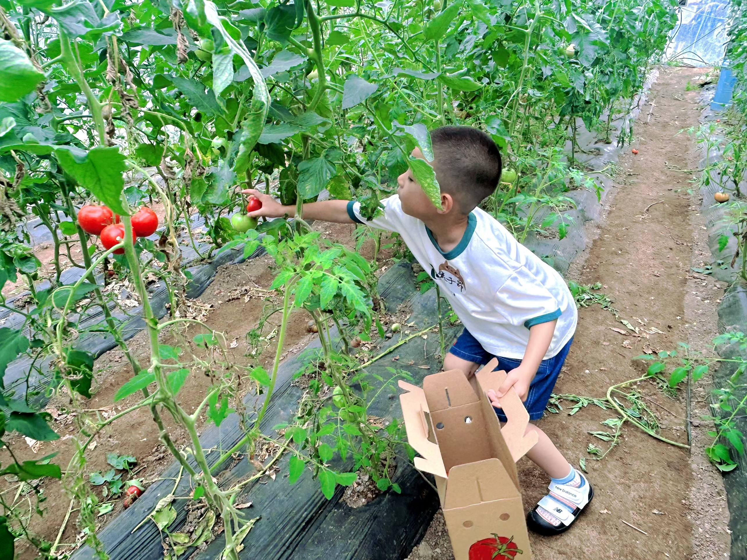 繪畫環節結束后,小朋友們和家長把創作的18幅童趣畫作放在展示區,鋪展成一道彩虹畫廊并進行評選。由繪畫老師和小朋友組成的“評委團”以貼畫紙投票方式選出最受歡迎和最有創意的作品。共評選出一等獎一名,二等獎兩名,三等獎三名,優秀獎十一名,由工作人員為獲獎人員頒發獎品。 采摘環節正式開始,采摘園里傳來陣陣歡笑。首先由志愿者示范采摘技巧,隨后小朋友們小心翼翼地采摘黃瓜、西紅柿,最后由家長們協助將小朋友們采摘的蔬菜放在“創意作品”里。一位小朋友說道:“原來畫畫不只是好玩,還能幫農民伯伯賣菜呢!”