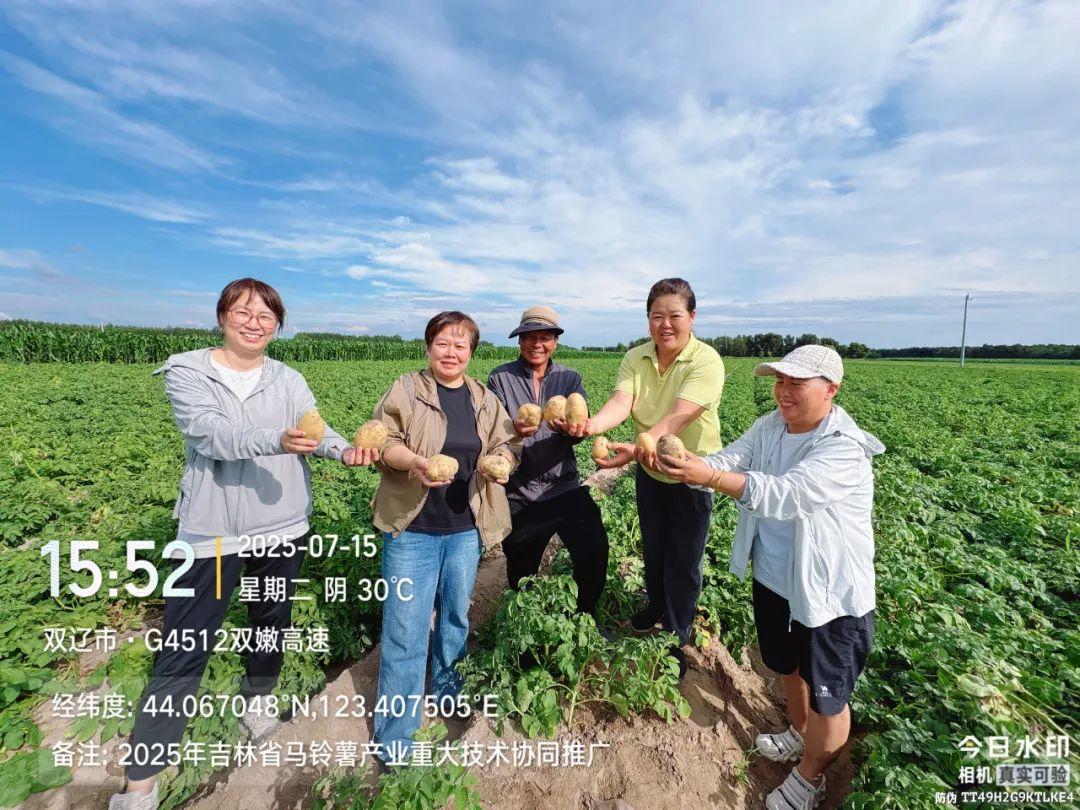 隨后項目組成員來到長嶺縣三青山鎮,與鎮黨委相關領導、基地負責人及技術人員對馬鈴薯膜下滴灌水肥一體化高效生產技術的示范情況、品種表現、病蟲害防治及肥水管理情況進行交流探討,并對近期工作開展提出相關指導意見。