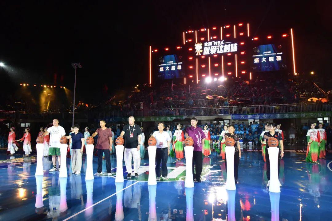 開幕式在綿綿細雨中開啟,具有當地民俗的膠東秧歌、鄉村達人及返鄉創業青年的歌舞、籃球少年的集體展示等豐富多彩表演引起觀眾們的陣陣歡呼。吉林省新農人王全福作為球員代表與大戶陳家村黨委書記、鄉村達人“大衣哥”朱之文、煙臺蘋果霞姐等共同啟幕本次比賽。北部賽區的激烈賽事也正式拉開帷幕。 在備受矚目的揭幕戰中,吉林省敦化黃泥河鎮隊與東道主招遠市大戶陳家村隊展開激烈較量。盡管天公不作美,但賽場內外熱情不減,觀眾席座無虛席,加油聲震耳欲聾。