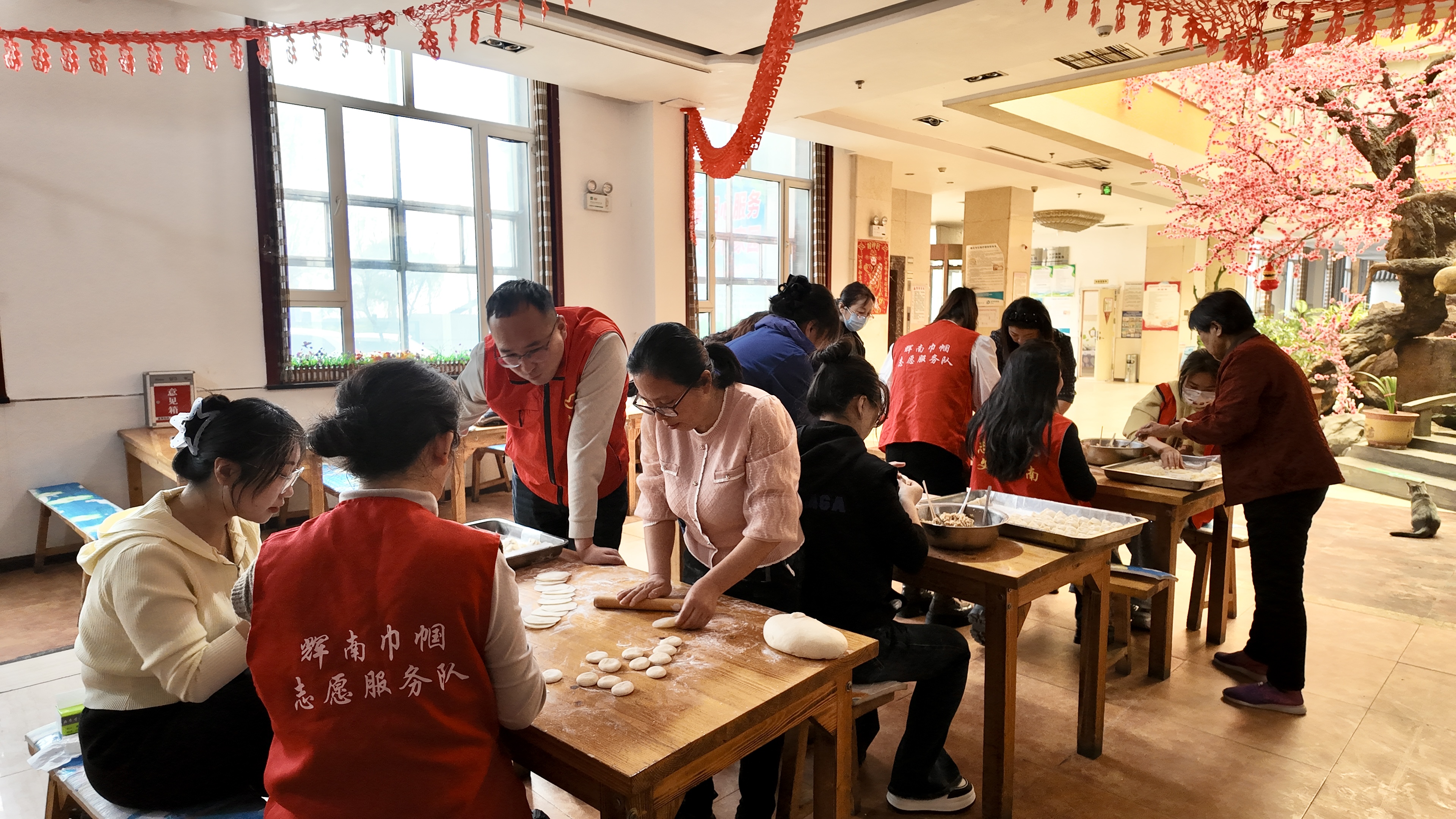 活動現(xiàn)場,志愿者們分工有序,有的清洗食材、調制餡料、搟皮包餃,有的負責清洗分裝水果。不一會兒,飽滿的餃子就擺滿餐盤,水果也整齊裝盤,現(xiàn)場洋溢著溫馨的氣氛。隨著餃子下鍋,平安川明德小學的小朋友們獻上了合唱、舞蹈等節(jié)目,用純真的表演贏得老人們陣陣掌聲,場面溫馨動人。